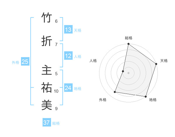 竹折 主祐美さんの総格は37画の5点!