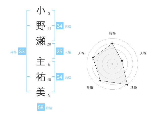 小野瀬 主祐美さんを姓名の画数から五運を鑑定