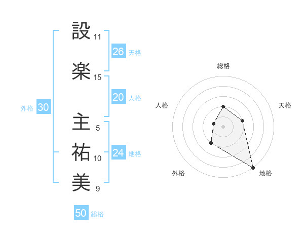 設楽 主祐美さんの総格は50画の2点!