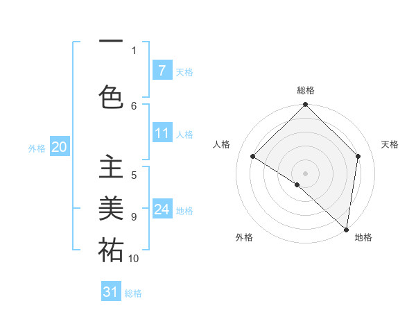 一色 主美祐さんの総格は31画の5点!