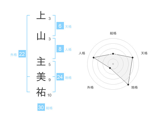 上山 主美祐さんを姓名の画数から五運を鑑定