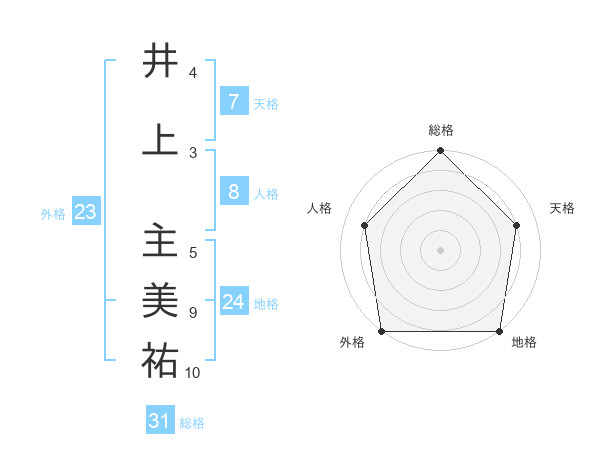 井上 主美祐さんを姓名の画数から五運を鑑定