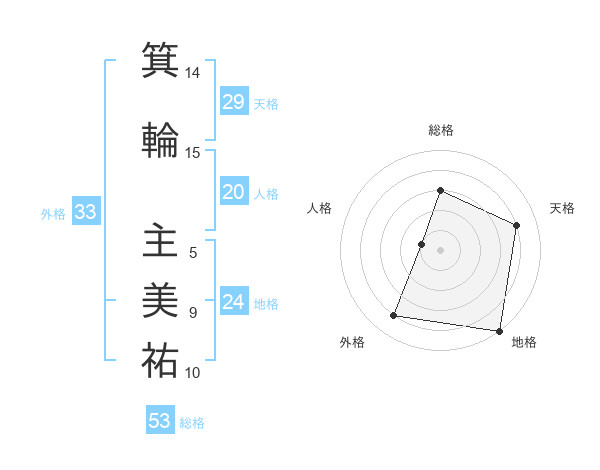 箕輪 主美祐さんの総格は53画の3点!