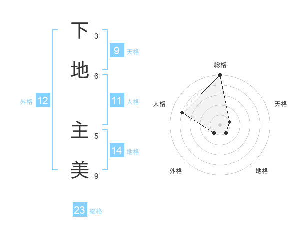 下地 主美さんの総格は23画の5点!