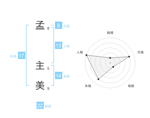 孟 主美さんの総格は22画の1点!