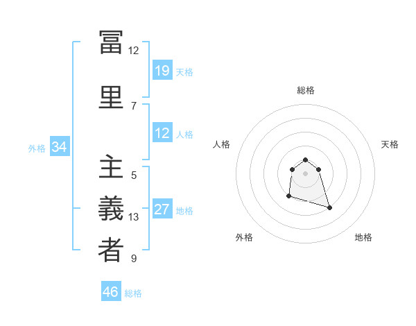 冨里 主義者さんを姓名の画数から五運を鑑定