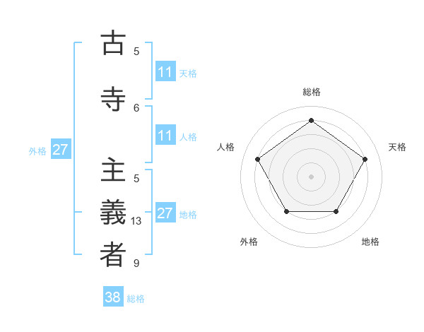 古寺 主義者さんの総格は38画の4点!