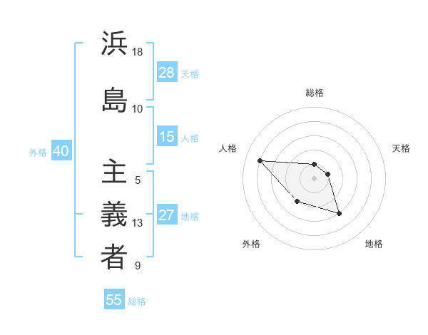 浜島 主義者さんを姓名の画数から五運を鑑定