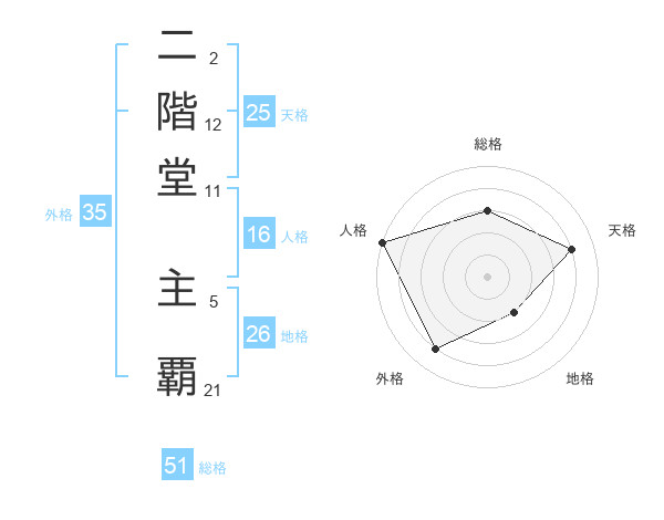 二階堂 主覇さんの総格は51画の3点!