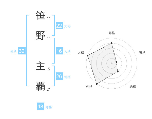 笹野 主覇さんの天格は22画の1点!