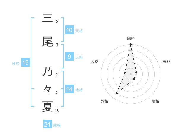 三尾 乃々夏さんを姓名の画数から五運を鑑定