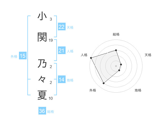 小関 乃々夏さんを姓名の画数から五運を鑑定