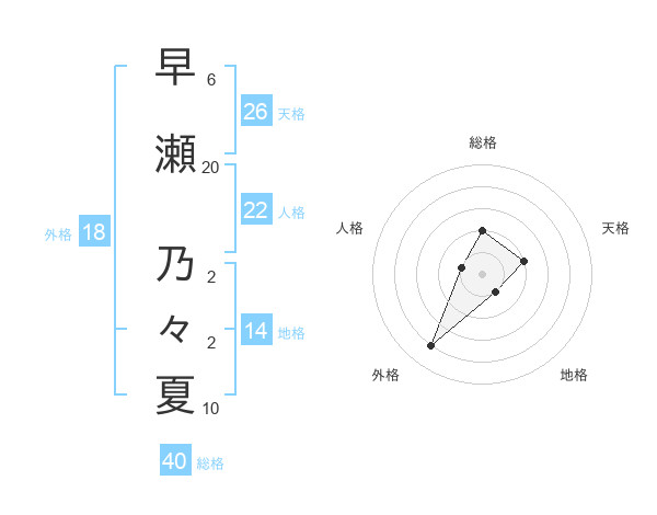 早瀬 乃々夏さんの外格は18画の4点!