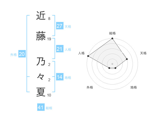 近藤 乃々夏さんの総格は41画の5点!