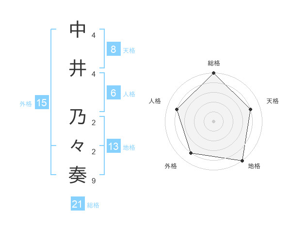 中井 乃々奏さんを姓名の画数から五運を鑑定