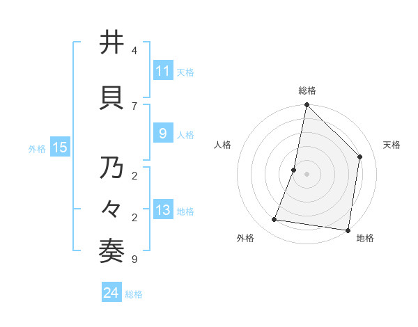 井貝 乃々奏さんを姓名の画数から五運を鑑定
