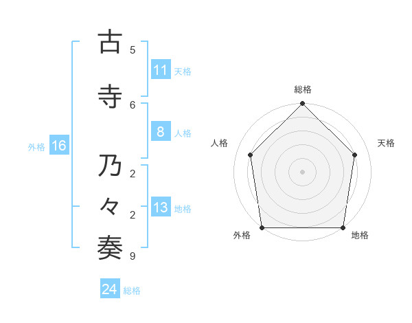 古寺 乃々奏さんの総格は24画の5点!