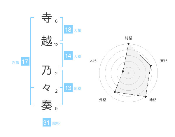 寺越 乃々奏さんの総格は31画の5点!