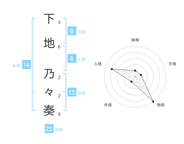 下地 乃々奏さんを姓名の画数から五運を鑑定
