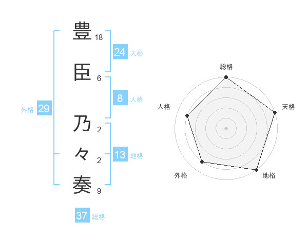 豊臣 乃々奏さんを姓名の画数から五運を鑑定