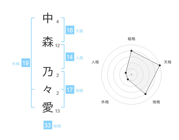 中森 乃々愛さんを姓名の画数から五運を鑑定