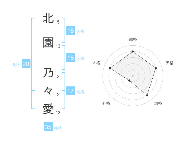 北園 乃々愛さんの天格は18画の4点!