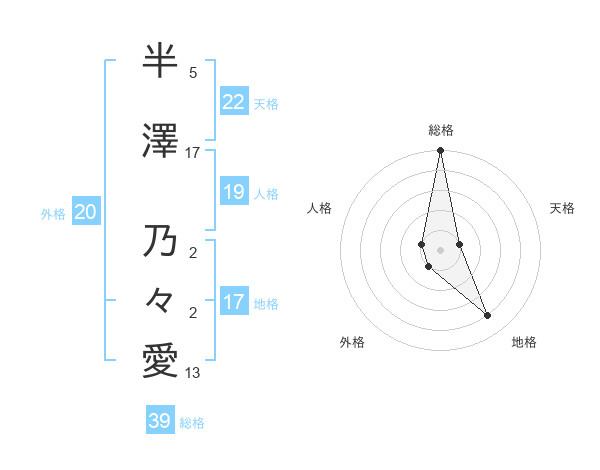半澤 乃々愛さんを姓名の画数から五運を鑑定