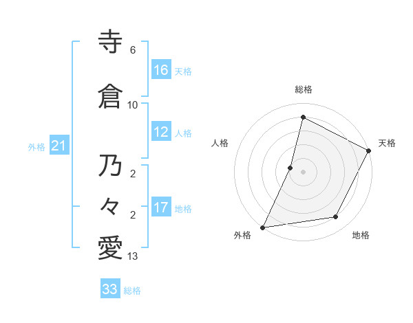 寺倉 乃々愛さんを姓名の画数から五運を鑑定