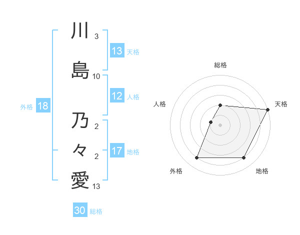 川島 乃々愛さんを姓名の画数から五運を鑑定