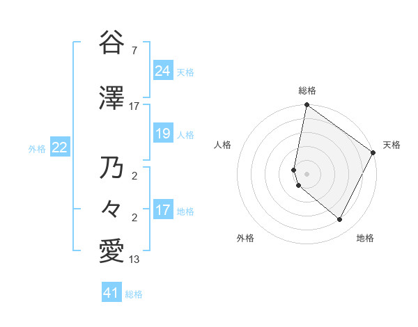 谷澤 乃々愛さんを姓名の画数から五運を鑑定
