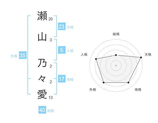 瀬山 乃々愛さんの天格は23画の5点!