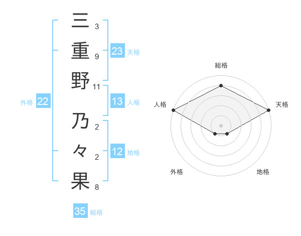 三重野 乃々果さんの外格は22画の1点!