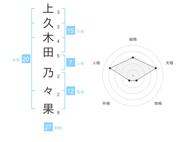 上久木田 乃々果さんの総格は27画の3点!