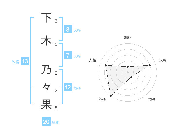 下本 乃々果さんの総格は20画の1点