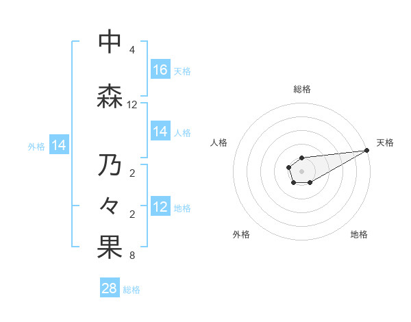 中森 乃々果さんを姓名の画数から五運を鑑定