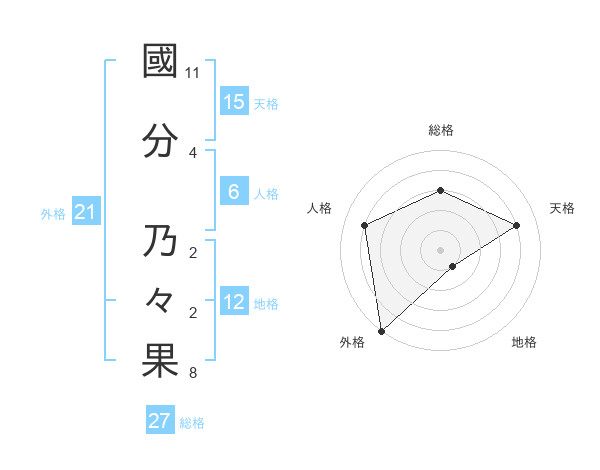國分 乃々果さんの外格は21画の5点