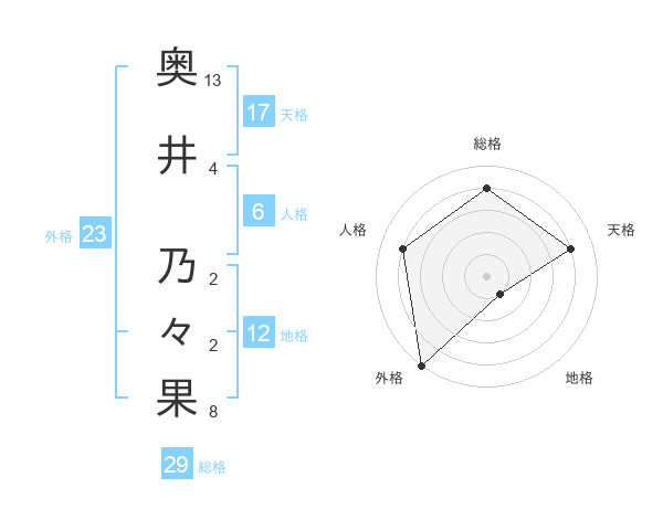 奥井 乃々果さんを姓名の画数から五運を鑑定