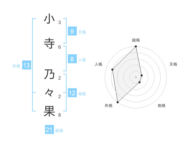 小寺 乃々果さんを姓名の画数から五運を鑑定