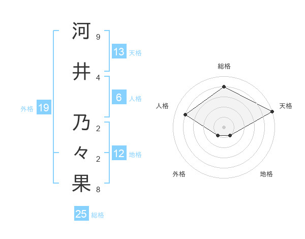 河井 乃々果さんを姓名の画数から五運を鑑定