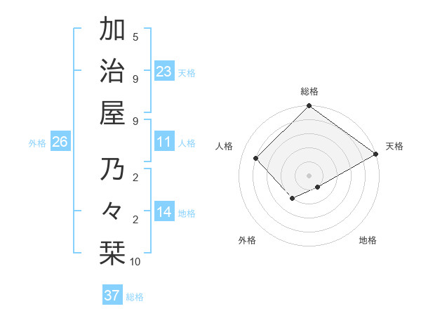 加治屋 乃々栞さんを姓名の画数から五運を鑑定