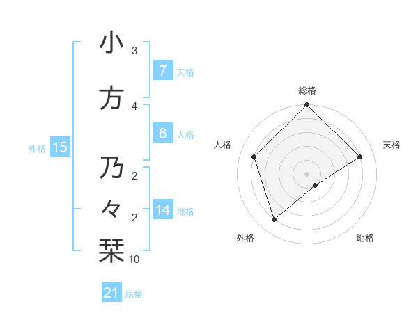 小方 乃々栞さんを姓名の画数から五運を鑑定