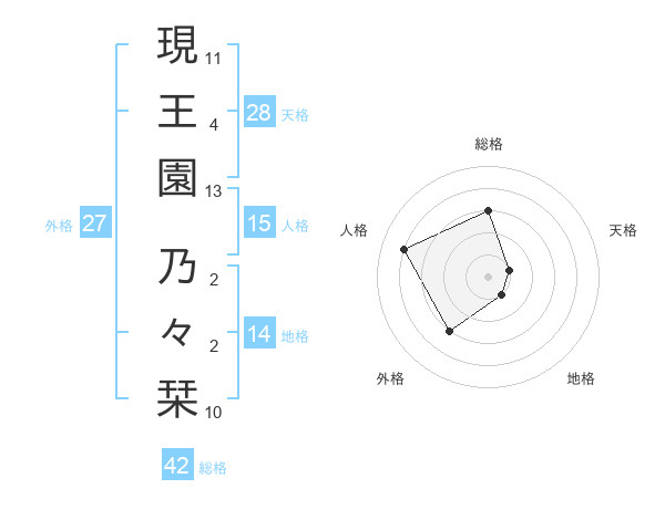 現王園 乃々栞さんの天格は28画の1点!