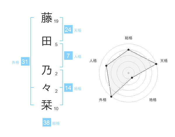 藤田 乃々栞さんの総格は38画の4点