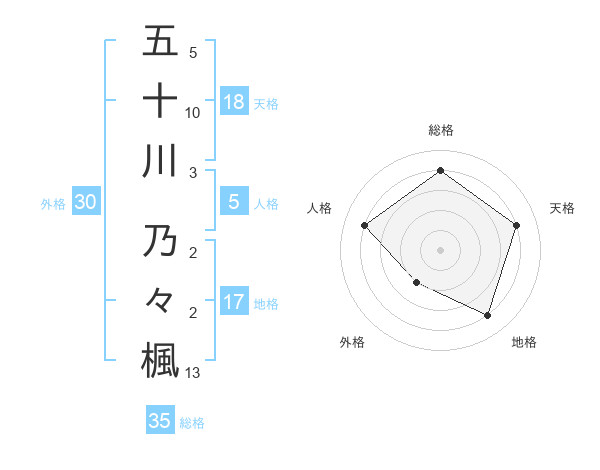 五十川 乃々楓さんの総格は35画の4点!