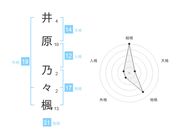 井原 乃々楓さんを姓名の画数から五運を鑑定