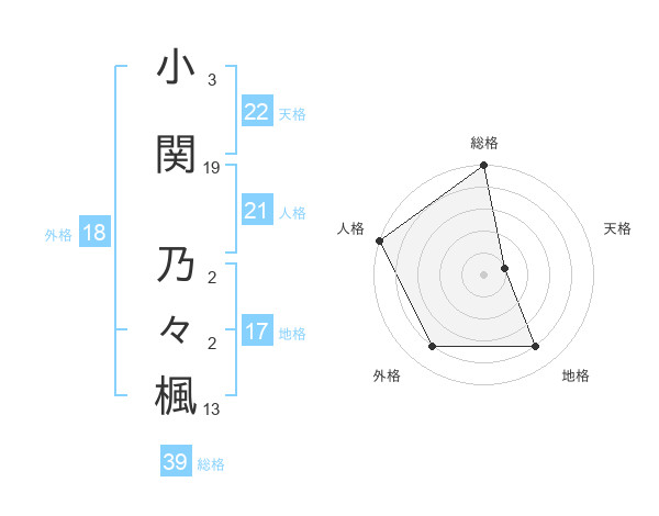 小関 乃々楓さんを姓名の画数から五運を鑑定