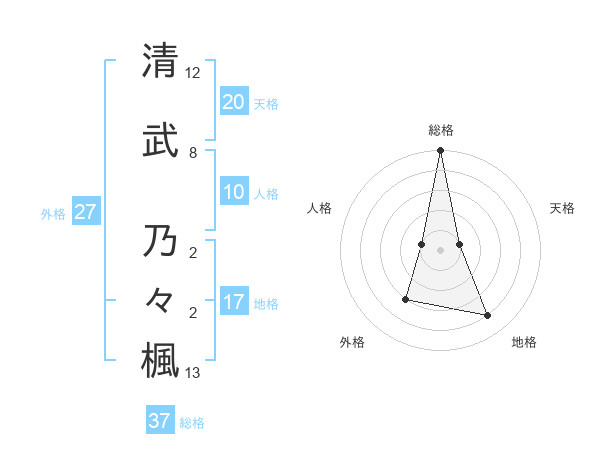 清武 乃々楓さんの総格は37画の5点!