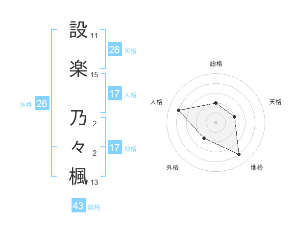 設楽 乃々楓さんを姓名の画数から五運を鑑定