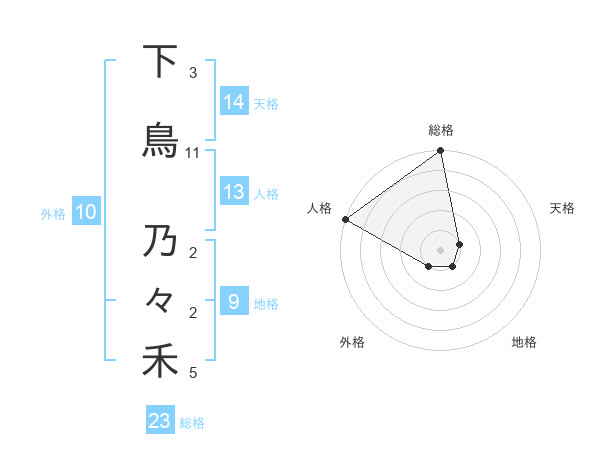 下鳥 乃々禾さんの総格は23画の5点!