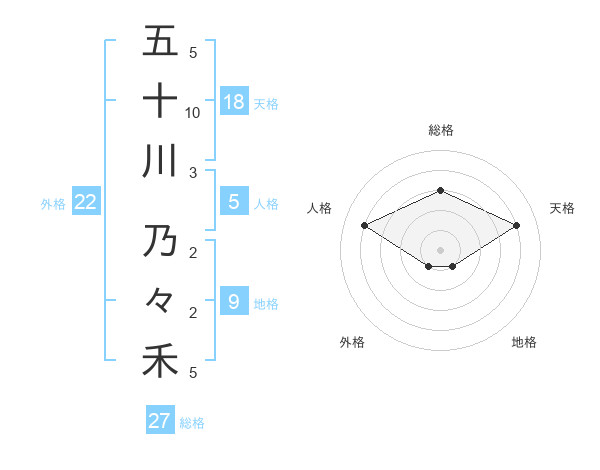 五十川 乃々禾さんを姓名の画数から五運を鑑定